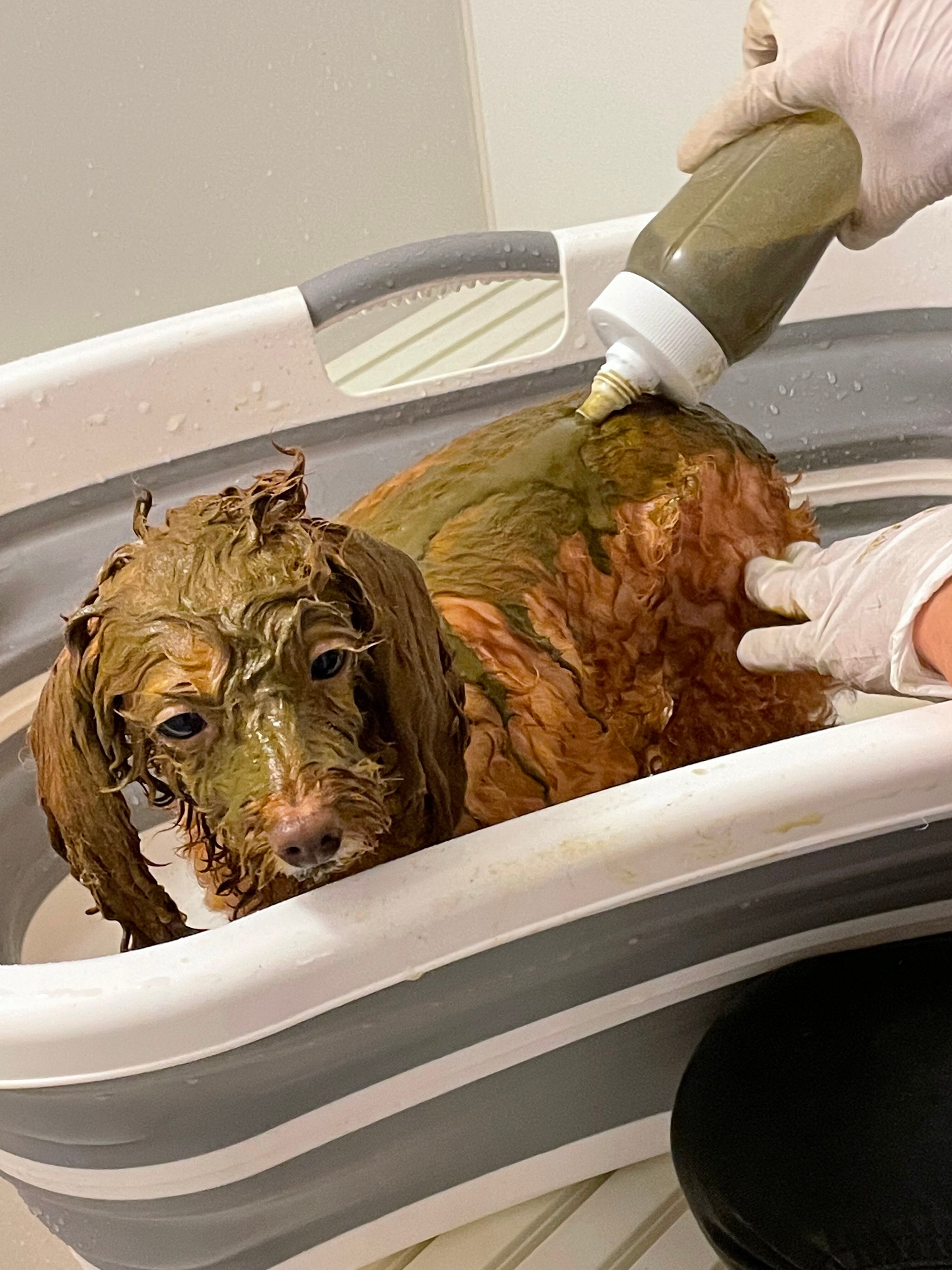 最初にお湯を注ぎ、その後ハーブパウダー、シャンプーやコンディショナーを入れ、よく振って下さい。
